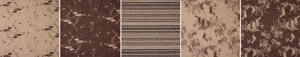 Segundo a artista, as estampas foram desenvolvidas a partir de pesquisa sobre a paisagem, registros naturais e processos gráficos que incluem veios, cascas, rastros e sobreposições. O material resultante foi aplicado em tecidos destinados a projetos de interiores.