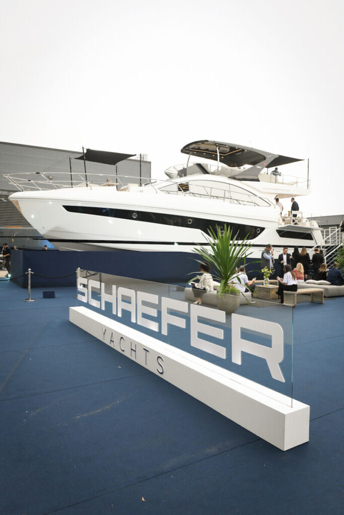A Schaeffer levou duas embarcações. A Schaefer 660, que se destaca pelas duas plataformas laterais dobráveis de acionamento hidráulico – aumentam em até 30% a praça de popa – e pela suíte master com entrada independente. São 18 passageiros de dia, com pernoite de dez. Já a Schaefer V44, que ganhou notoriedade por ter sido a escolha da modelo Gisele Bündchen, tem ampla área externa, capacidade para 14 pessoas durante o dia e acomodação para quatro em pernoite.