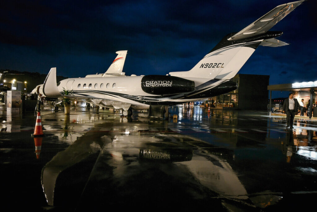Outro jato super médio que os visitantes puderam conhecer de perto foi o Cessna Citation Longitude, no espaço da TAM Aviação Executiva, representante da marca. Ele tem alcance de 6.428 quilômetros, cabine com piso totalmente plano e capacidade para até 12 passageiros. Junto dele, também estava o jato leve Citation CJ3+, que leva até nove passageiros e voa até 3.778 quilômetros sem reabastecer.