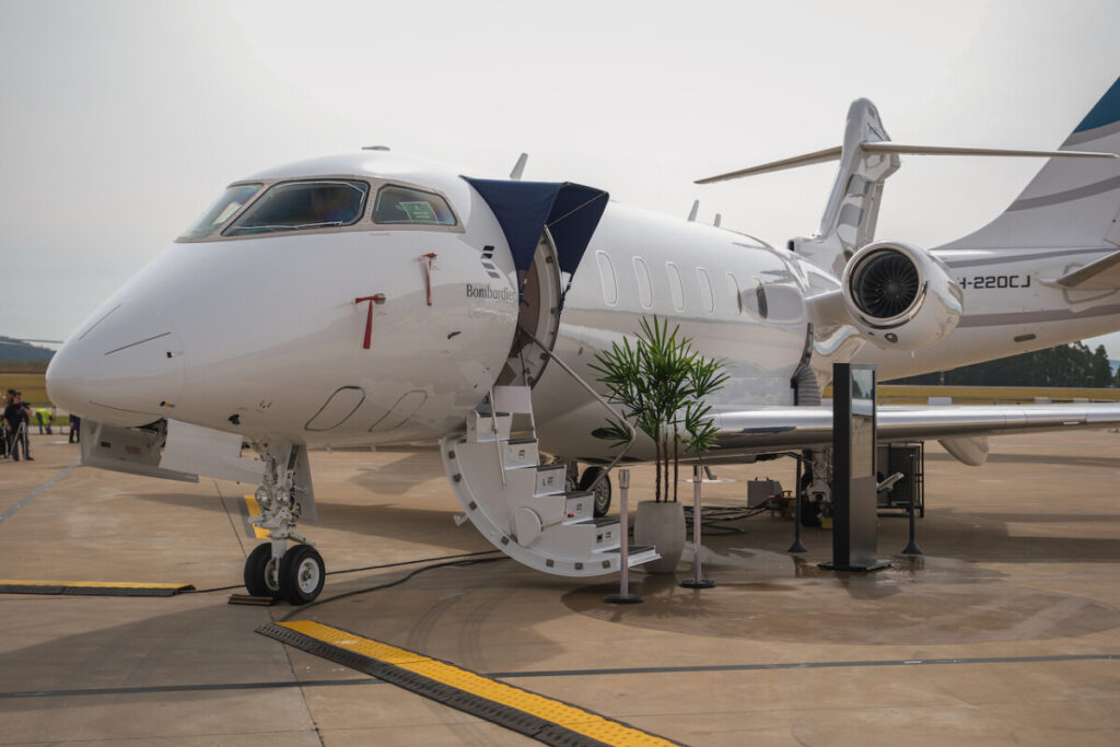 Dentre os presentes, nenhuma outra aeronave ia mais longe que o Bombardier Global 7500, jato de ultra longo alcance – 14.260 quilômetros sem escalas. Ou seja, é possível decolar lá da pista do Catarina e voar direto para Sydney, na Austrália. Com quatro ambientes distintos, a cabine pode ser personalizada. Cabe ao comprador escolher entre a versão com capacidade máxima de 19 passageiros até a versão com suíte privativa e cabine para descanso da tripulação. A Bombardier exibiu também o jato médio Challenger 3500, com alcance de 6.297 quilômetros e capacidade para até dez passageiros. Tem cabine com piso plano e a maior largura da categoria.