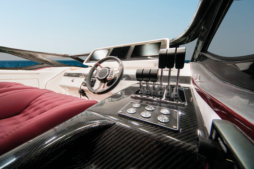 A 58 Offshore é laminada em Kevlar com fibra de carbono, possui um casco extremamente leve e resistente, equipado com rabetas Arneson, hélices suíças Rolla e dois potentes motores MAM-1200hp. A embarcação também conta com volante multifuncional que integra desde os comandos de posicionamento de rabeta até o volume do som, além de bancos anti-impacto.
