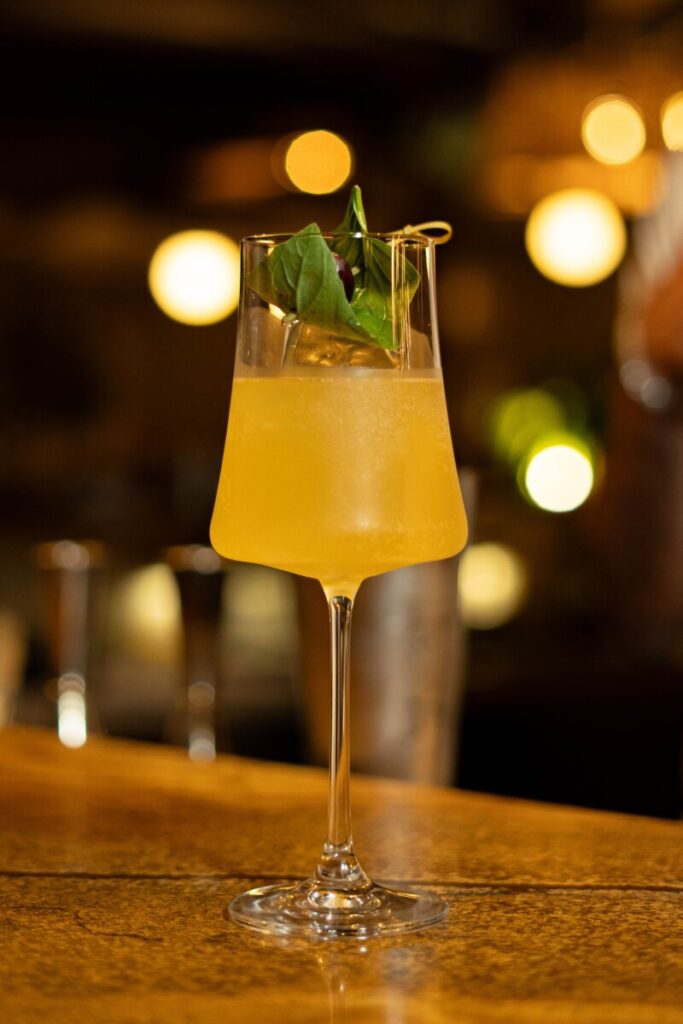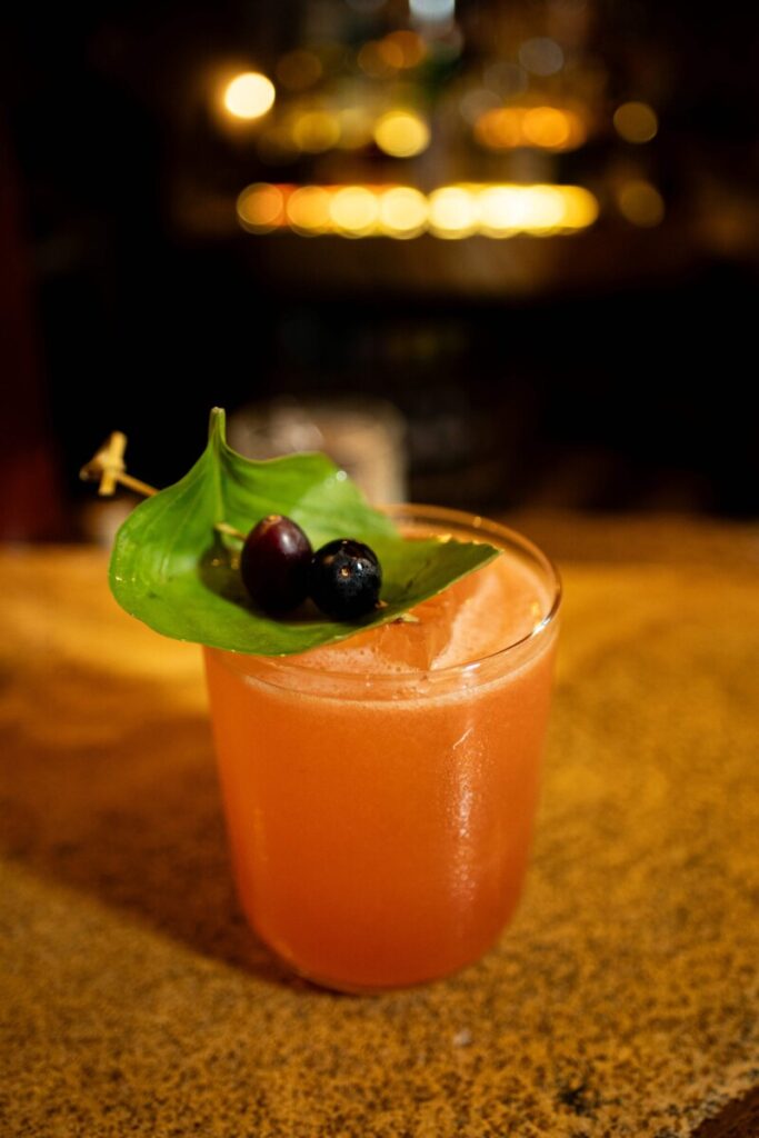 De base mediterrânea, a carta dialoga com referências da Itália, sul da França e Grécia, ao mesmo tempo em que incorpora ingredientes e técnicas associadas a biomas brasileiros. Os coquetéis foram desenvolvidos para acompanhar os pratos da casa, atuando como extensão líquida da cozinha.