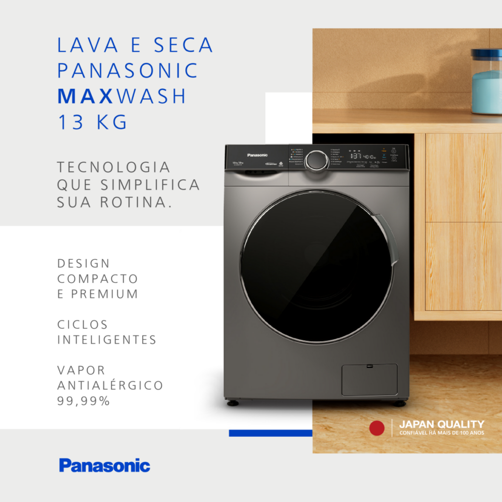 De olho em um mercado em forte expansão, que cresceu 37% em unidades vendidas em 2024, segundo levantamento da GfK, a Panasonic anuncia o lançamento da lava e seca MaxWash Front Load 13 kg. O produto chega para atender um público que busca praticidade, desempenho e design premium em um único equipamento.