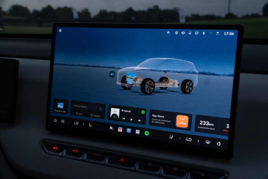 A experiência tecnológica está à altura do requinte. O sistema Coffee OS 3 reúne um painel digital de 12,3”, uma central multimídia de 14,6” e um head-up display de 25”, projetando informações a até 4,5 metros à frente. O conjunto permite comandos de voz em português, integração sem fio com Apple CarPlay e Android Auto, Wi-Fi e controle completo pelo aplicativo My GWM, que permite ajustar climatização, travas e recarga à distância.